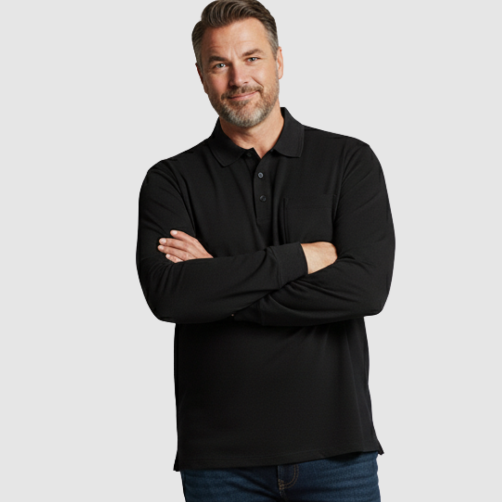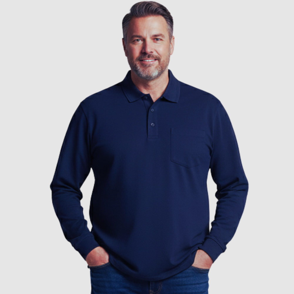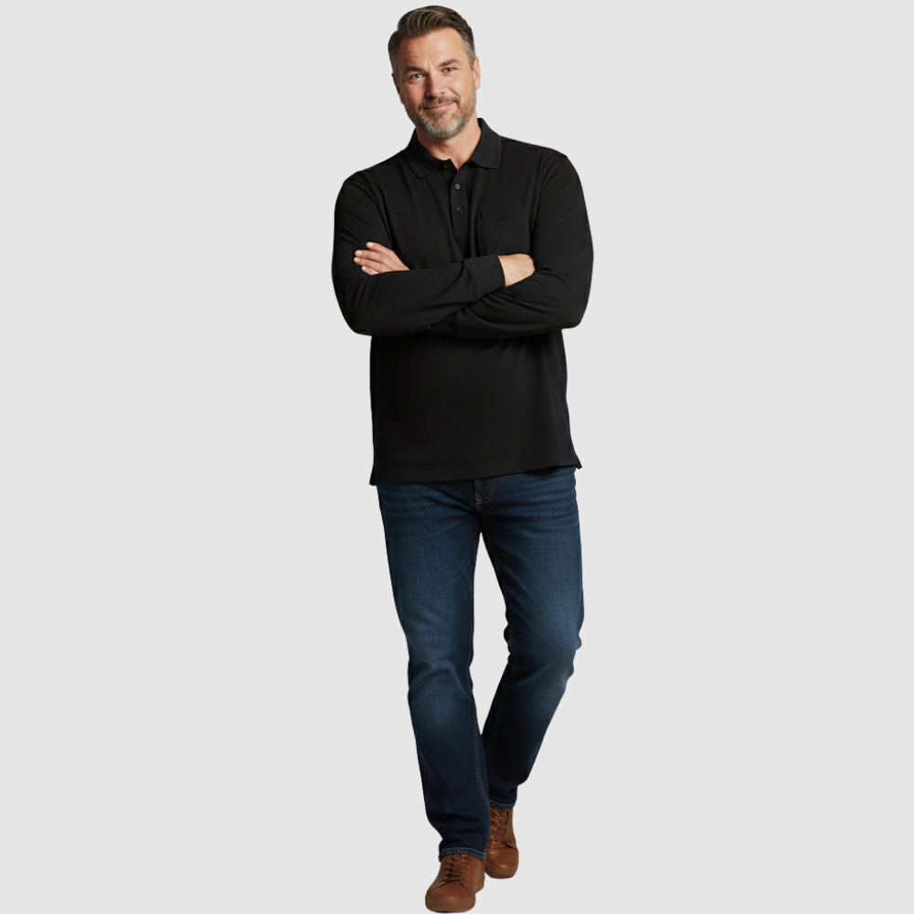 This long-sleeved polo pairs with almost anything, from dark jeans to pale chinos. Thanks to its knitted collar, it's perfect for layering.