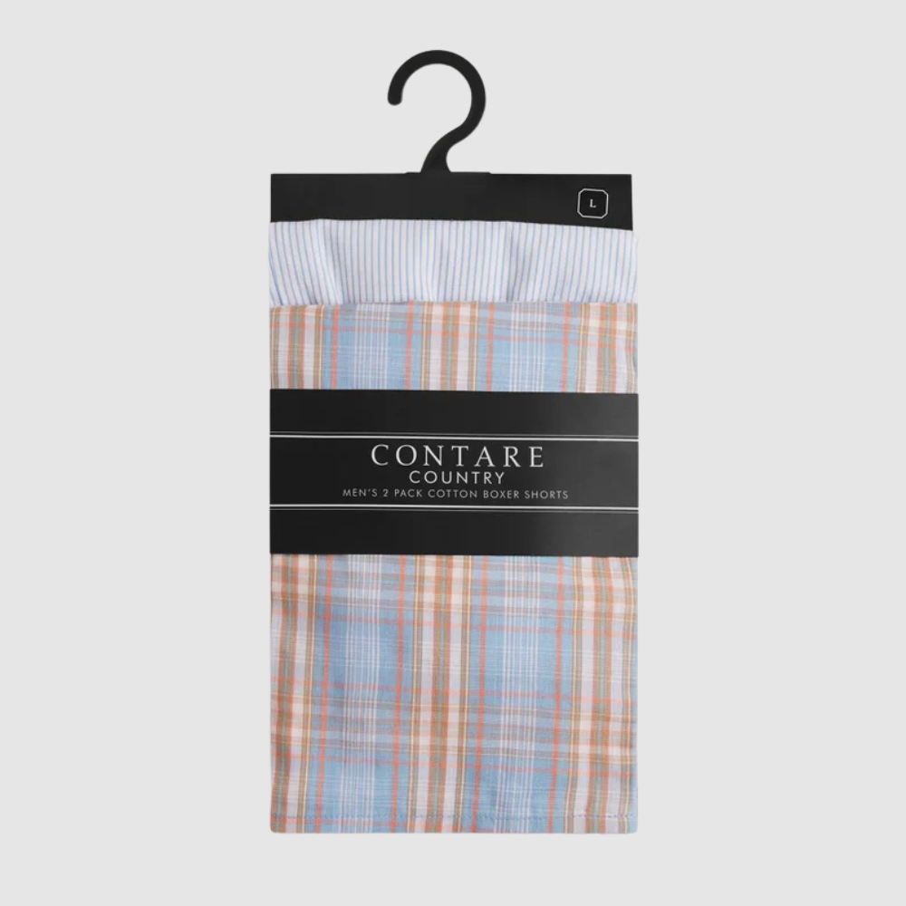 This set includes two boxer shorts: one in a coloured check motif and the other showcasing a striped design. Made from 100% cotton, these boxers offer a timeless fit. They feature an elasticated waistband and a practical button-front fly for ease and comfort.