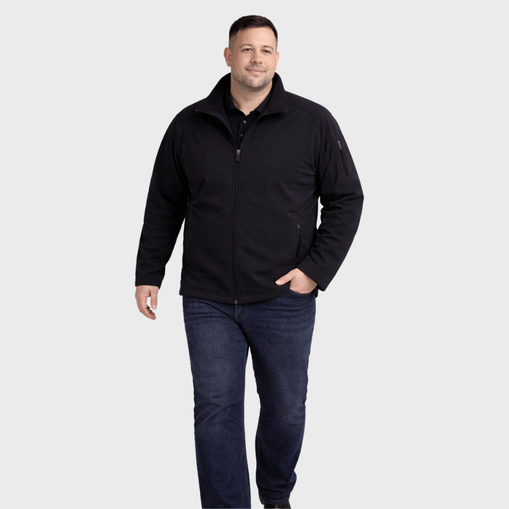 Built for daily wear and designed specifically for bigger builds, the Everyday Performance Jacket is a structured mid-weight softshell made to handle real life. Made for Big Men from substantial 340gsm bonded stretch fabric, it offers wind resistance, water resistance and all-day comfort without bulk.