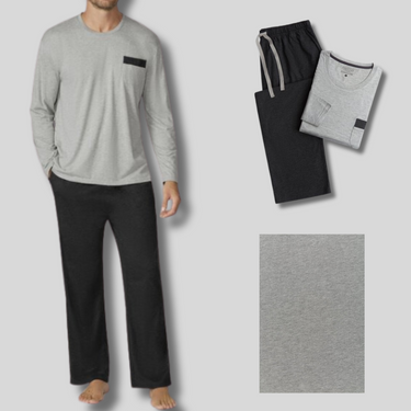 This set comes with Long sleeve top and long leg bottoms. Our Bamboo Cotton Jersey Knit range, our charcoal and light grey set comes in the CONTARE COUNTRY 2 piece long style. The set consists of a long sleeve crew neck tee, and matching elastic cord waist pants.
